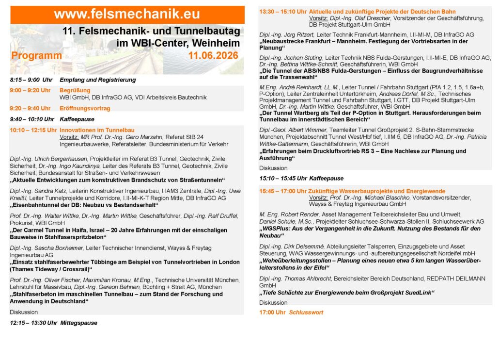 Hiermit laden wir zum 11. Felsmechanik- und Tunnelbautag im Juni 2026 ein.