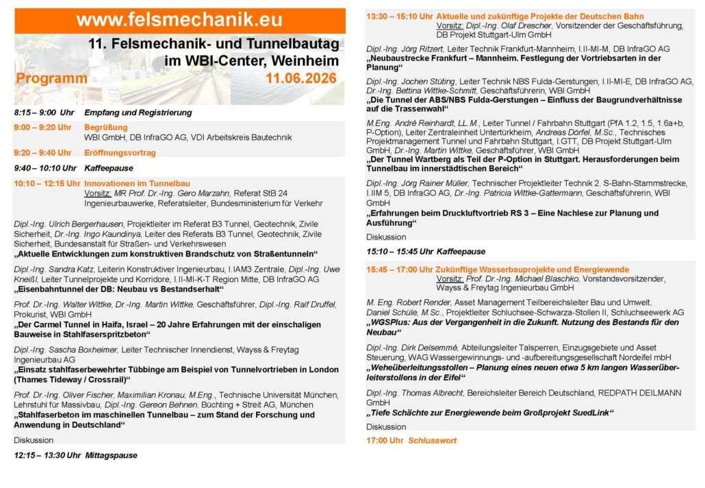 Hiermit laden wir zum 11. Felsmechanik- und Tunnelbautag im Juni 2026 ein.
